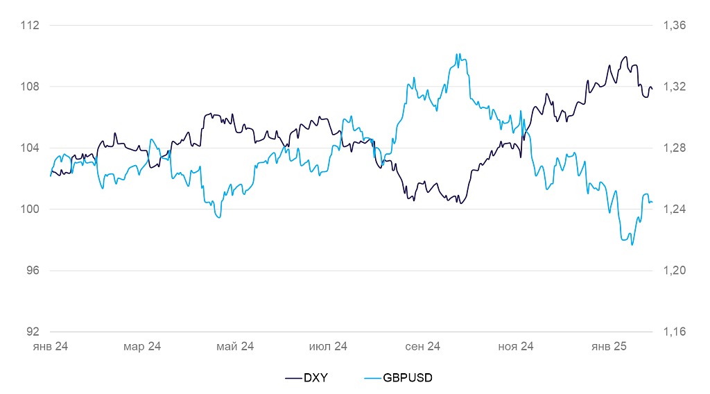 Динамика индекса доллара DXY и валютной пары GBP/USD