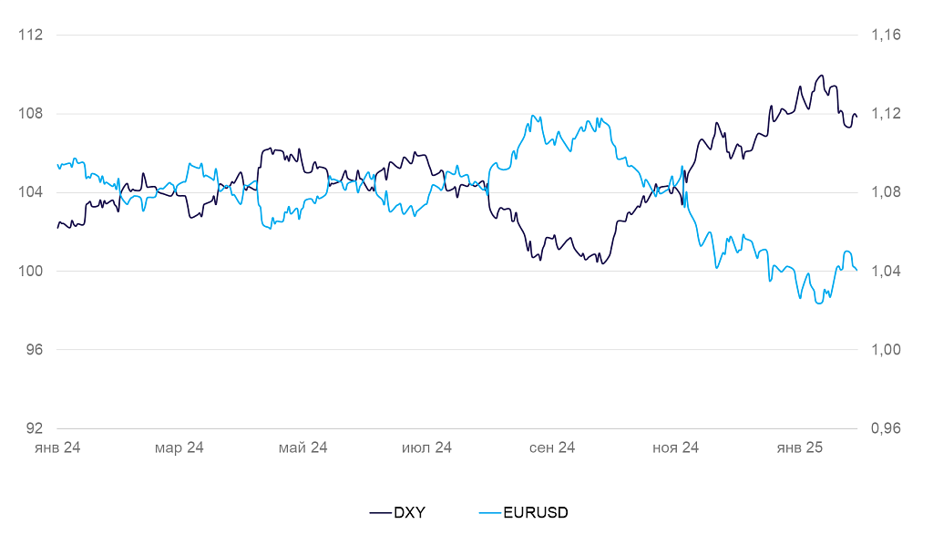 Динамика индекса DXY и валютной пары EUR/USD