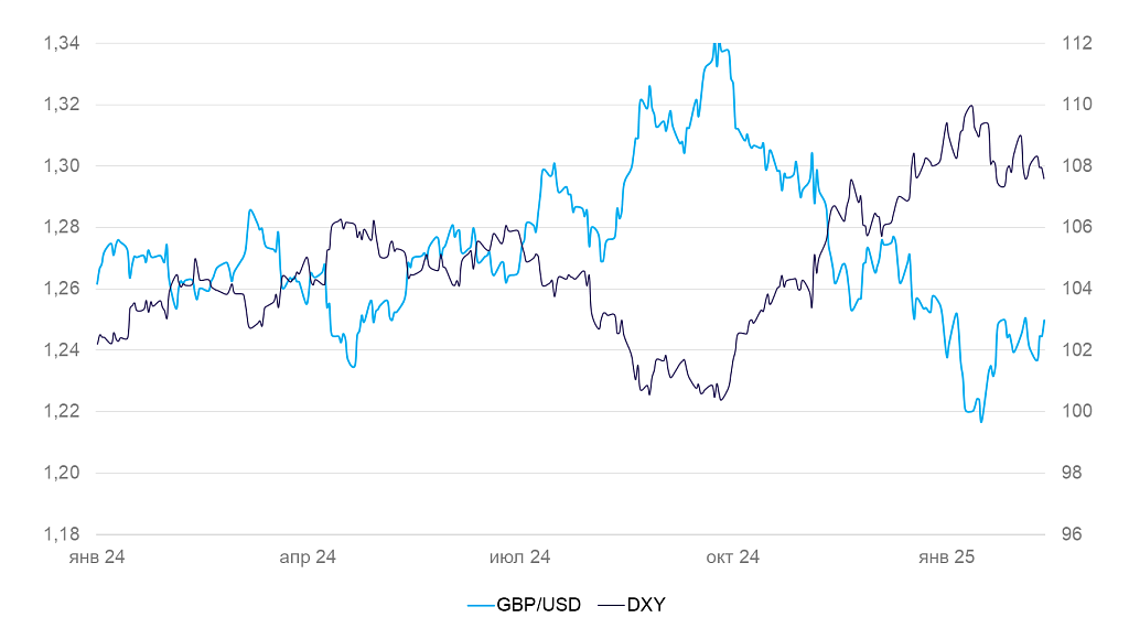 Динамика индекса доллара DXY и валютной пары GBP/USD