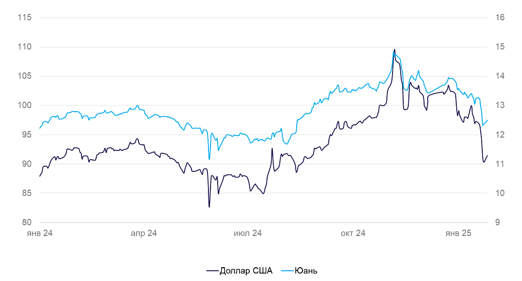 На неделе пошлины США отошли на второй план — их затмили возросшие надежды на скорое урегулирование украинского конфликта. А после Мюнхенской конференции по безопасности рынки стали закладывать в котировки увеличение военных расходов в Европе. В итоге выросли фондовые индексы ЕС. Окреп и евро, в котором снизилась геополитическая премия, а доллар подешевел на 1%. На этом фоне рубль продолжил расти в цене и достиг минимальных значений к доллару США с сентября. Торговые конфликты пока отошли на второй план, но остаются источником риска в ближайшие несколько месяцев.