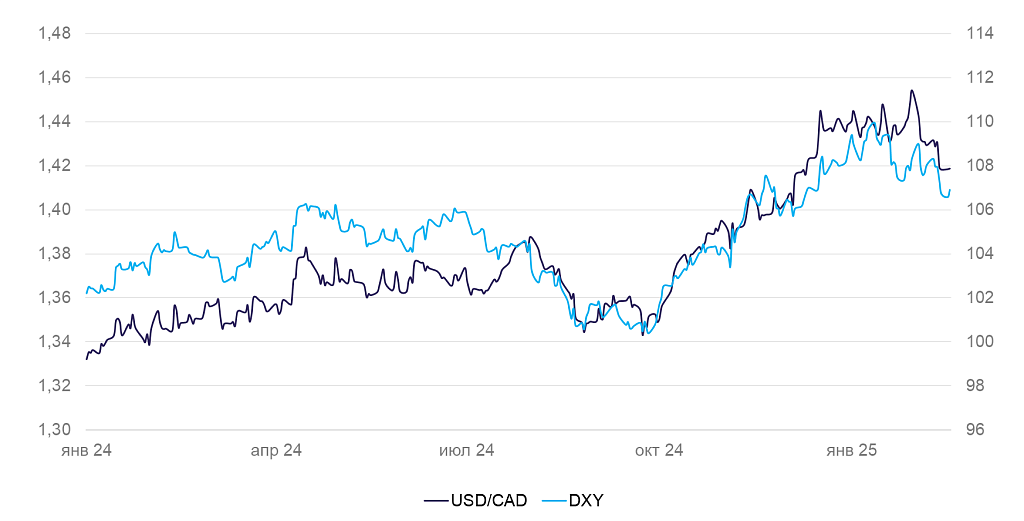 Динамика индекса DXY и валютной пары USD/CAD