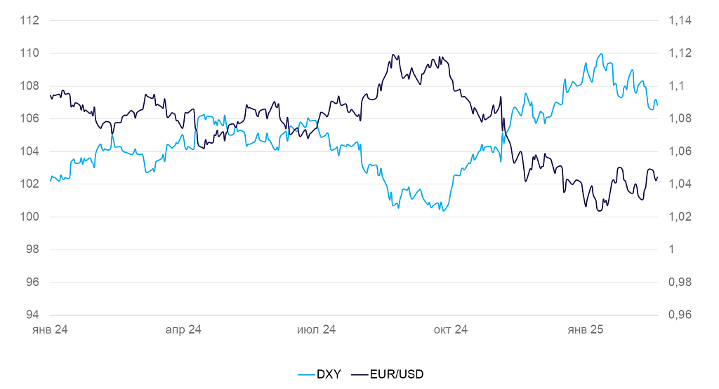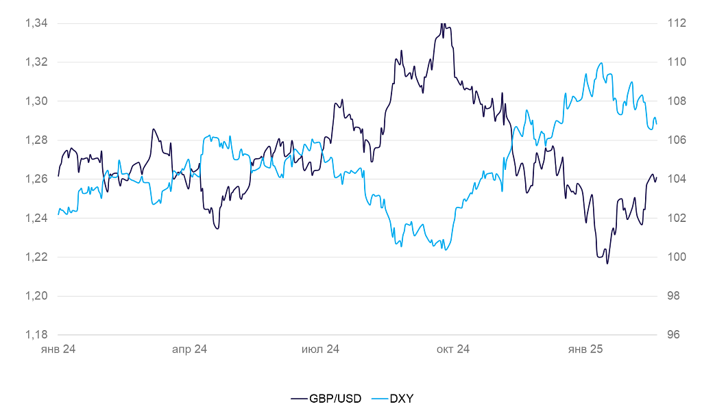 Динамика индекса доллара DXY и валютной пары GBP/USD