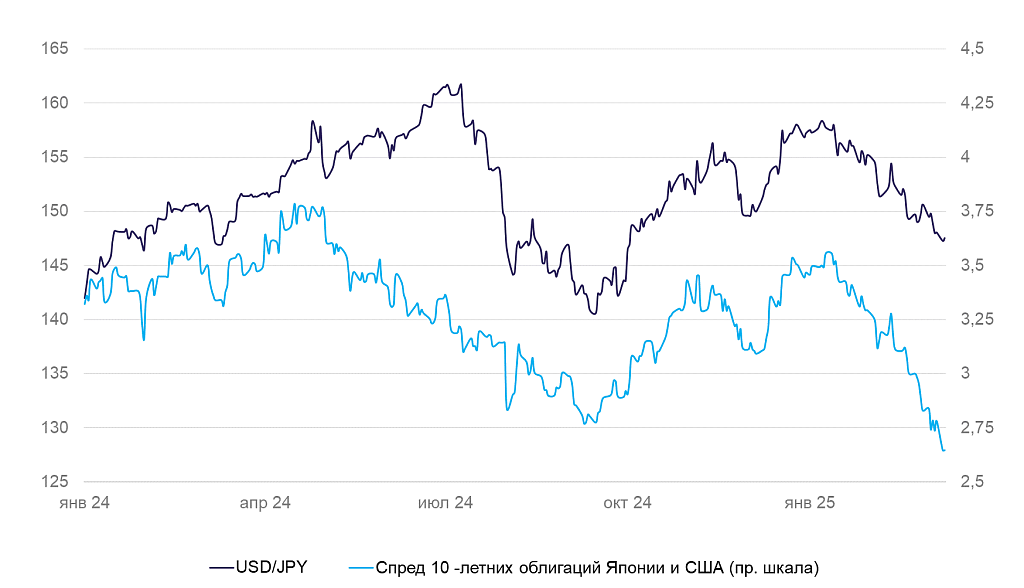 За неделю иена укрепилась еще на 1,5%, курс USD/JPY находится вблизи полугодовых минимумов. Рост доходностей иеновых облигаций продолжается, что также способствует повышению привлекательности иены.