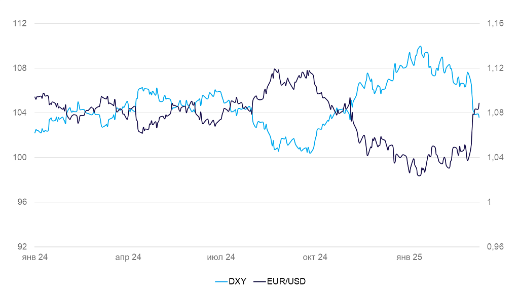Динамика индекса DXY и валютной пары EUR/USD