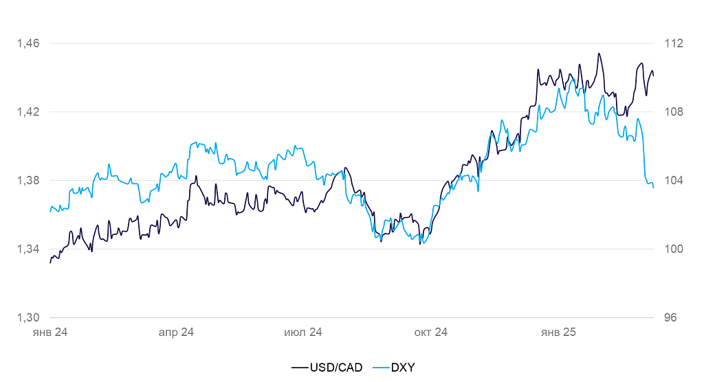 Динамика индекса DXY и валютной пары USD/CAD