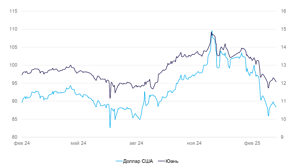 Курс рубля к доллару и юаню