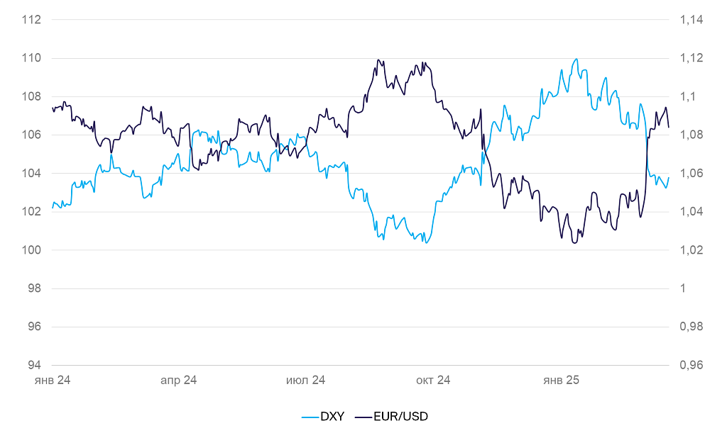 Динамика индекса DXY и валютной пары EUR/USD