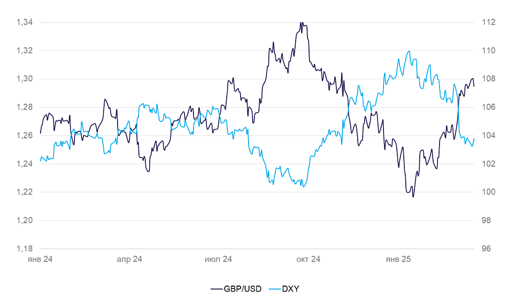 Динамика индекса доллара DXY и валютной пары GBP/USD