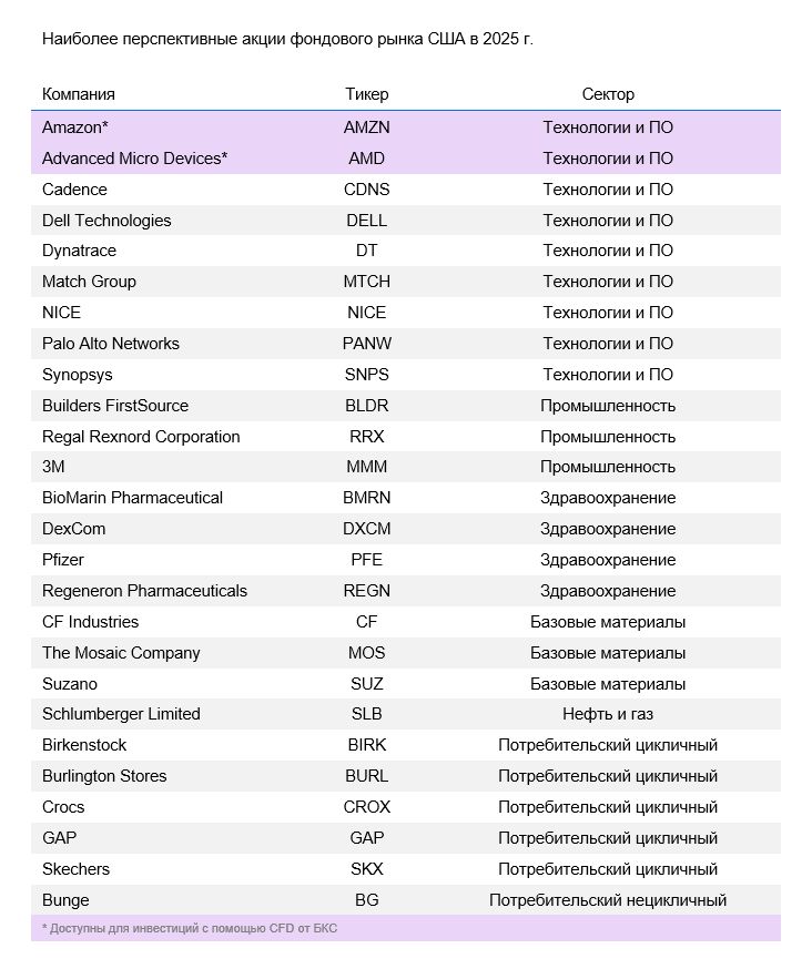 В 2025 г. отдельные компании могут опередить широкий рынок, получая поддержку от инициатив нового президента США. Среди ключевых драйверов — меры поддержки стратегических отраслей, снижение налоговой нагрузки и тарифная политика, способствующая внутренним инвестициям.