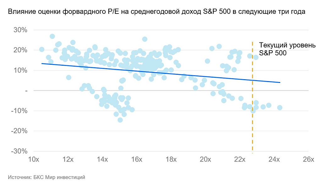 Высокая оценка S&P 500 ограничивает потенциал темпов роста в среднесрочной перспективе