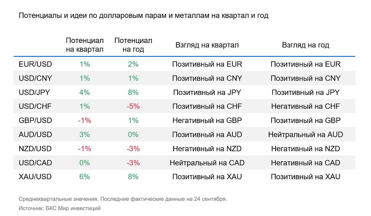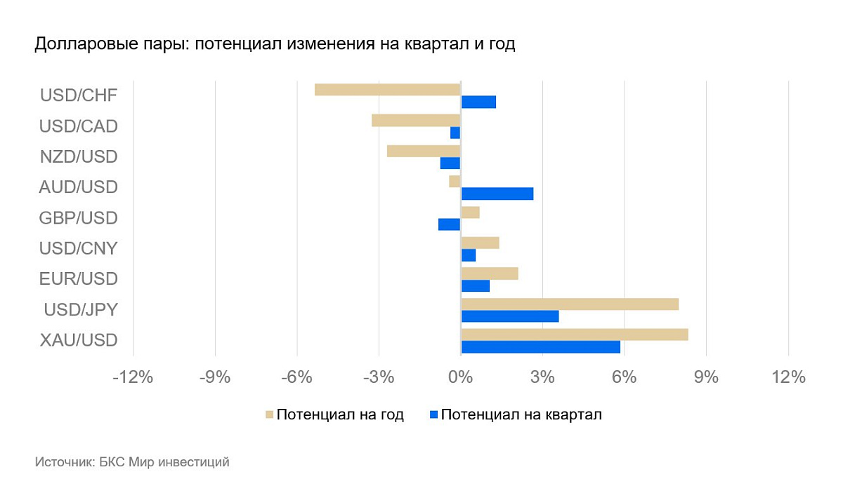 Мы полагаем, что Нацбанк Швейцарии продолжит смягчать свою политику во II полугодии 2025 г. — I полугодии 2026 г., а курс постепенно вернется в диапазон 0,85–0,9 франков за доллар США.