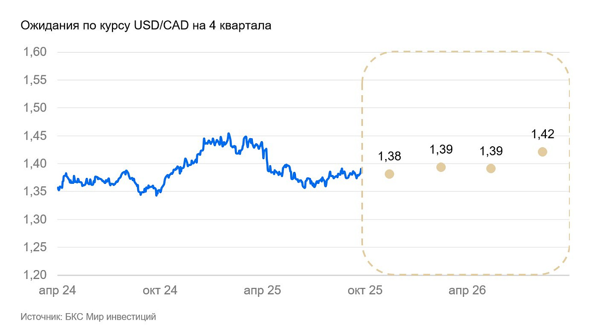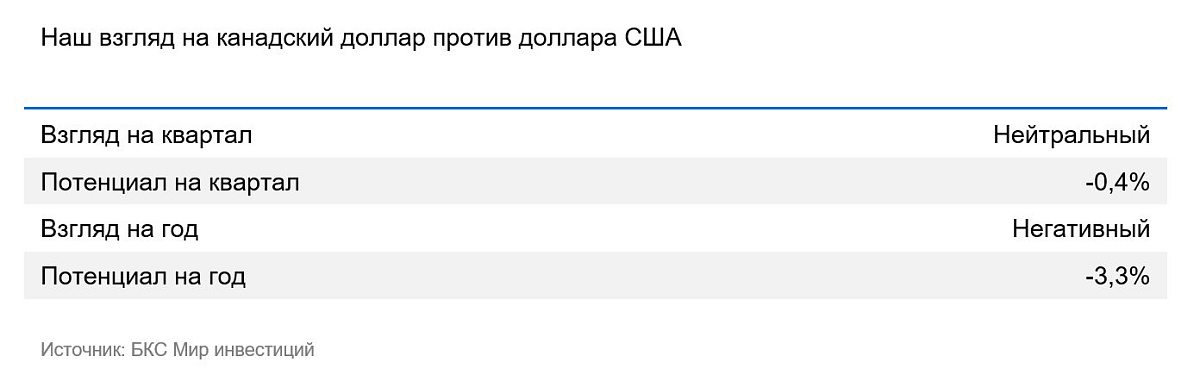 Мягкая ДКП и замедление экономики создают все условия для дальнейшей слабости канадского доллара. Девальвацию будут сдерживаться лишь ожидания ослабления доллара США до конца 2025 г.