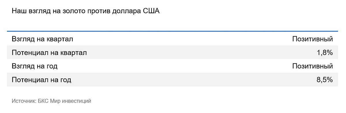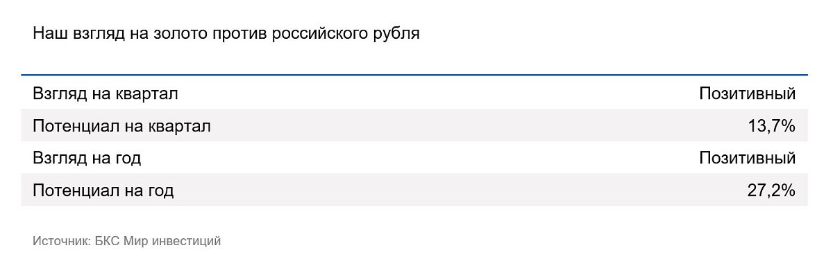 Мы полагаем, что из-за сохранения геополитических рисков и ослабления курса рубля золото будет одним из наиболее привлекательных активов на горизонте года.