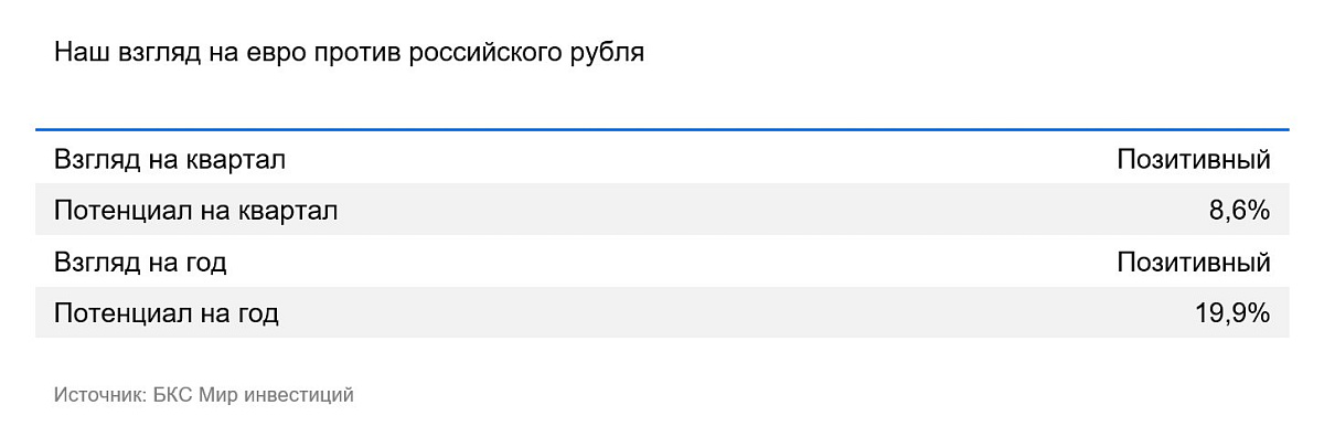 Мы полагаем, что укрепление евро к рублю будет одним из самых больших среди наших валютных пар, поскольку слабость рубля будет сопровождать некоторое укрепление евро.