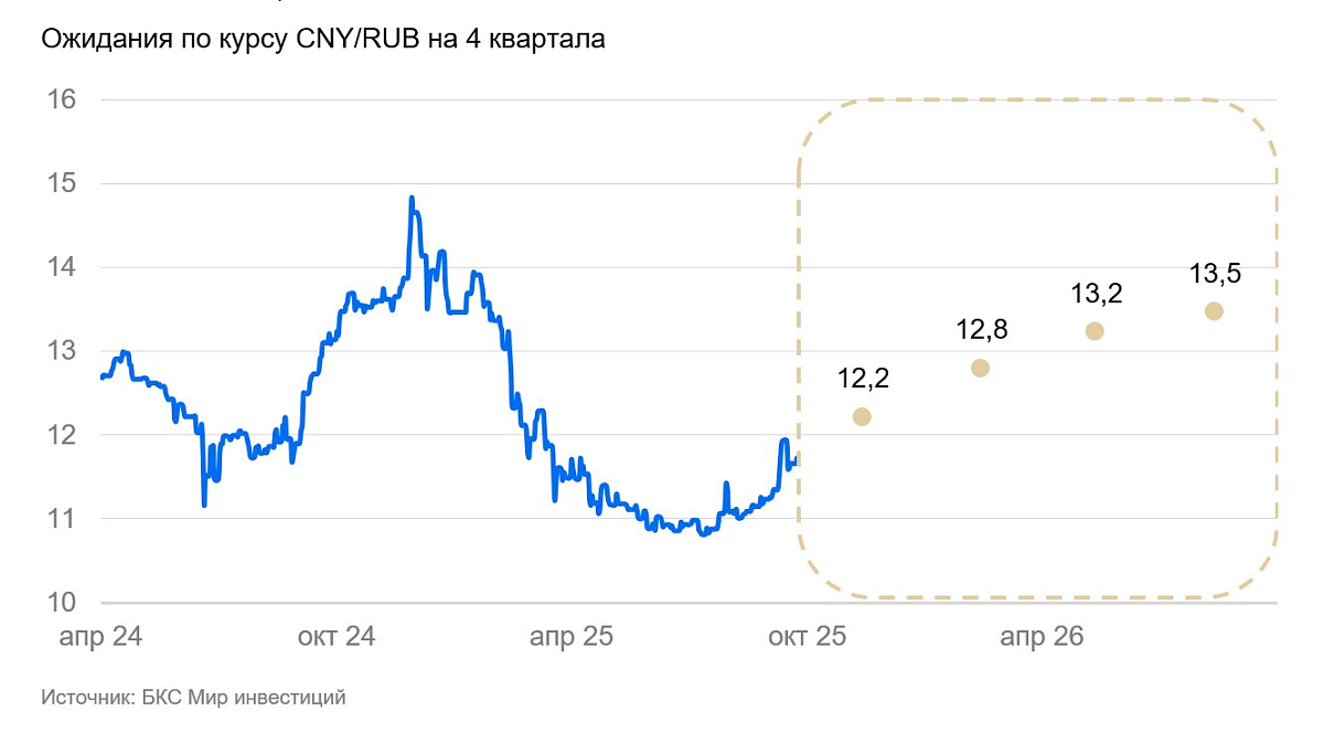 Рубль сохраняет устойчивость. Ему помогают слабый спрос на валюту (рублевые активы привлекательны в силу высокой ставки), низкий спрос на импорт и удовлетворение спроса на валютные сбережения через квазивалютные облигации. Текущий курс соответствует среднему уровню за последние 12 месяцев. Завершение отложенной продажи валюты ЦБ, понижение цены бюджетного правила и смещение сезонности импорта сдвинут курс рубля в начале следующего года. Совокупный эффект составит порядка четырех рублей по среднеквартальному курсу.