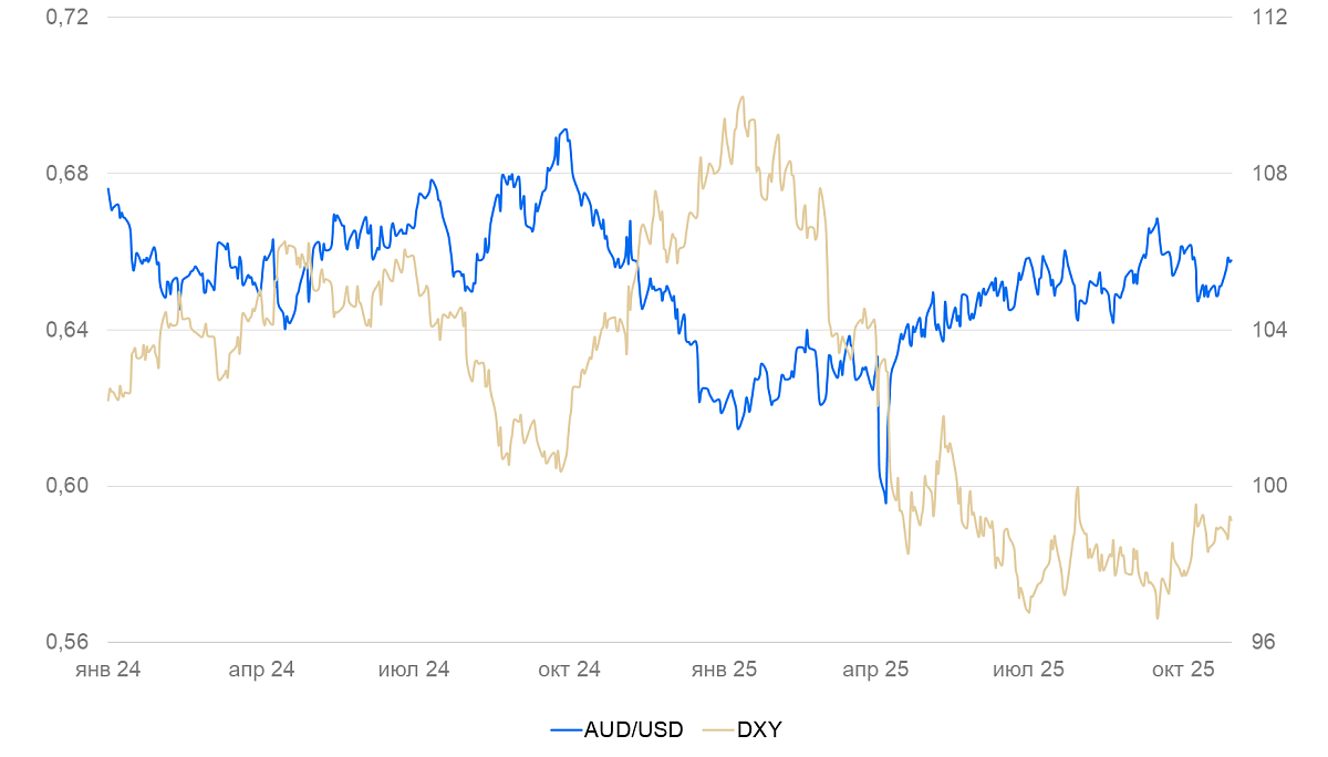 На неделе курс доллара США укрепился на 0,2%, остался на уровне 99 п. по индексу DXY. Прошли переговоры Трампа и Си Цзиньпина, по итогам которых США снизят пошлины на Китай на 10 п.п., а Китай воздержится от введения экспортного контроля в отношении редкоземельных металлов на год и возобновит покупки сои у США. Последний раунд торговой войны закончился неудачно для США, однако политические риски для американского рынка снизились. Индекс S&P 500 обновил исторические максимумы, капитализация NVIDIA превысила $5 трлн.