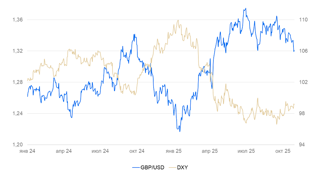 На неделе курс доллара США укрепился на 0,2%, остался на уровне 99 п. по индексу DXY. Прошли переговоры Трампа и Си Цзиньпина, по итогам которых США снизят пошлины на Китай на 10 п.п., а Китай воздержится от введения экспортного контроля в отношении редкоземельных металлов на год и возобновит покупки сои у США. Последний раунд торговой войны закончился неудачно для США, однако политические риски для американского рынка снизились. Индекс S&P 500 обновил исторические максимумы, капитализация NVIDIA превысила $5 трлн.