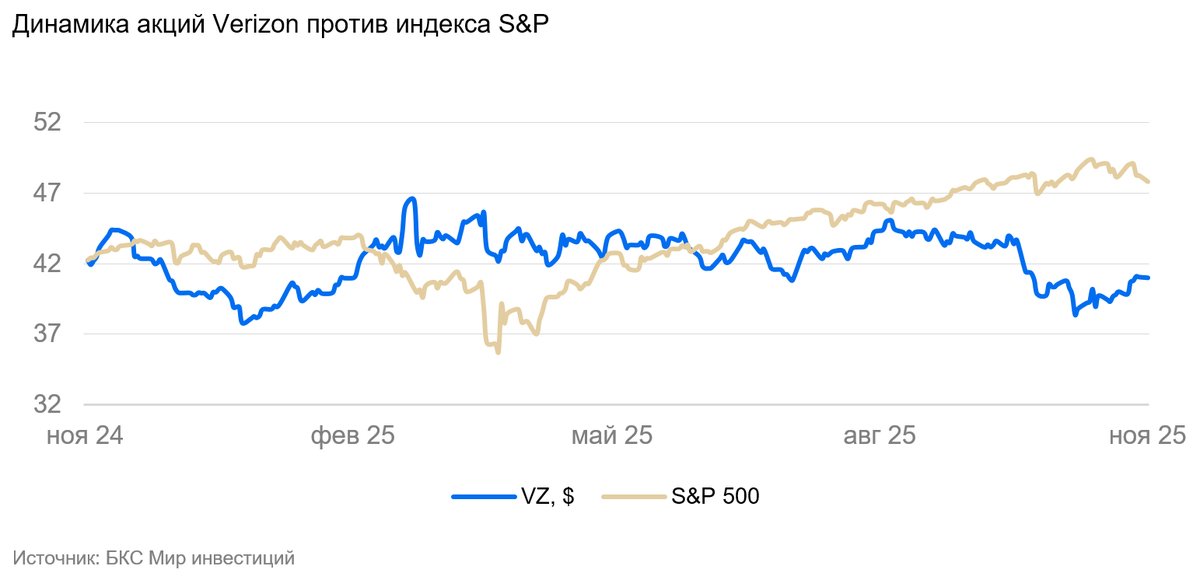 В день объявления о назначении нового СЕО акций упали на 5,1% из-за неопределенности в отношении дальнейшей стратегии. Однако непосредственная реакция на новости о сокращении 15 тыс. сотрудников была позитивной: по данным Reuters, акции Verizon выросли примерно на 1,3–1,7% на фоне общего снижения рынка. Инвесторы заложили в цену ожидаемый рост маржи и свободного денежного потока за счет снижения постоянных затрат.