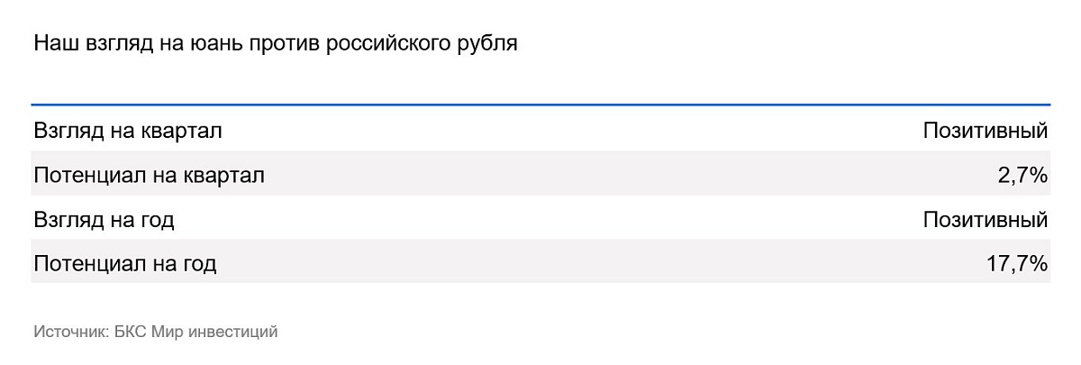 На горизонте года рубль должен подешеветь к юаню за счет слабости самого рубля и дальнейшего укрепления юаня. Мы не ожидаем существенных проблем с юаневой ликвидностью на российском рынке, как и других специфических факторов, способных повлиять на динамику валютной пары.