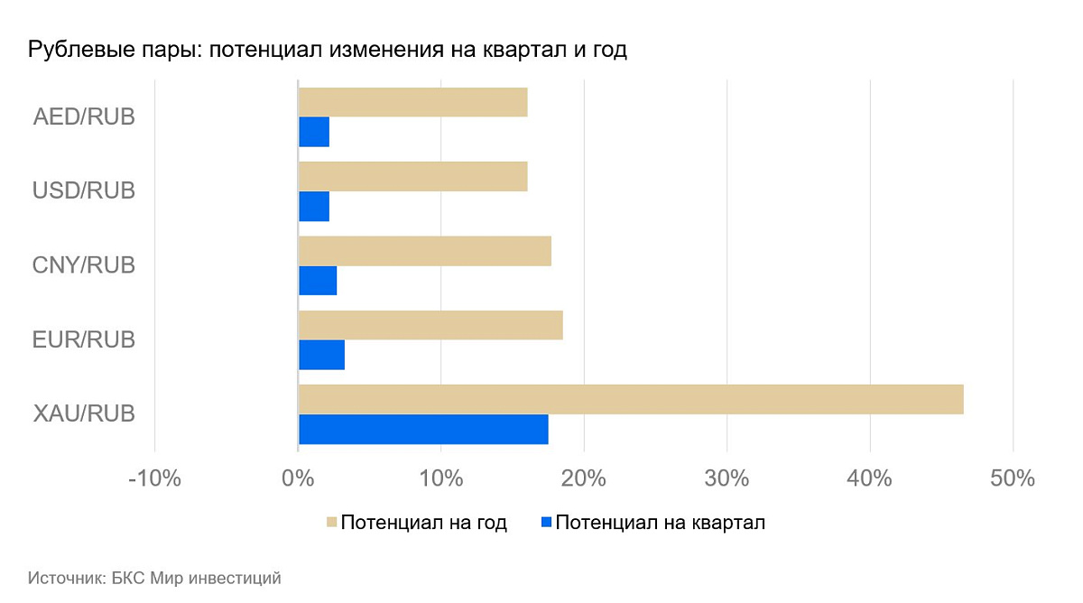 Этот эффект во многом будет сглажен под влиянием больших валютных депозитов, которые укрепят рубль. Устойчивое ослабление курса начнет происходить по мере снижения ключевой ставки и доходности рублевых активов. Скорее всего, процесс будет медленным и плавным и растянется на весь 2026 г.