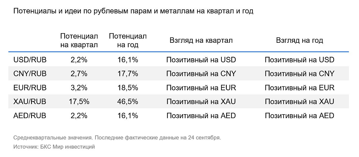 Рубль сохраняет устойчивость. Ему помогают слабый спрос на валюту (рублевые активы привлекательны в силу высокой ставки), низкий спрос на импорт и удовлетворение спроса на валютные сбережения через квазивалютные облигации. Текущий курс соответствует среднему уровню за последние 12 месяцев. Завершение отложенной продажи валюты ЦБ, понижение цены бюджетного правила и смещение сезонности импорта сдвинут курс рубля в начале следующего года. Совокупный эффект составит порядка четырех рублей по среднеквартальному курсу.