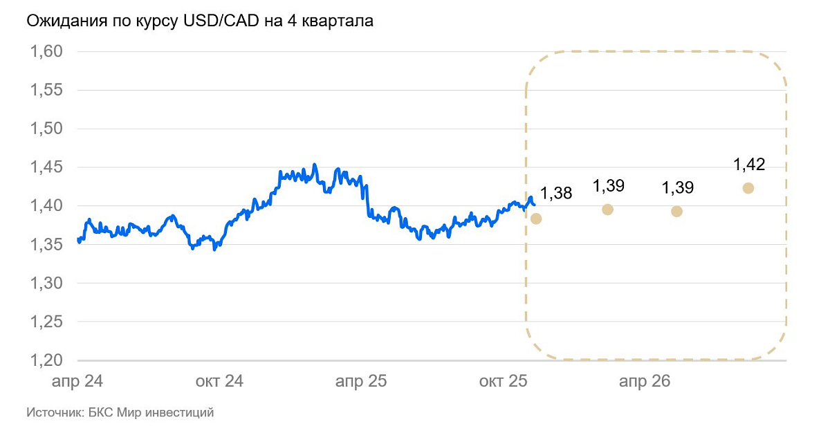 Мягкая ДКП и замедление экономики создают все условия для дальнейшей слабости канадского доллара. Девальвацию будут сдерживаться лишь ожидания ослабления доллара США до конца 2025 г.