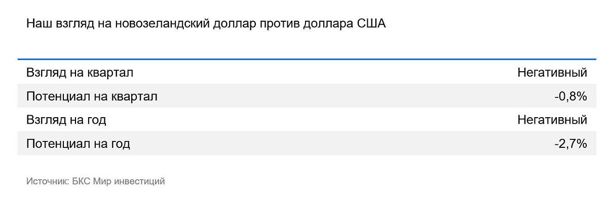 Экономика Новой Зеландии в технической рецессии — годовой рост ВВП остается отрицательным, несмотря на небольшой рост в IV квартале 2024 г. и I квартале 2025 г. В I квартале инфляция замедлилась до 2,5% г/г, но затем ускорилась до 2,7%. Несмотря на это, центральный банк снизил ставку до 3%. Реальная ставка приближается к нулю, что снижает и так невысокую привлекательность новозеландского доллара. Мы полагаем, что «киви» продолжит постепенно дешеветь даже на фоне слабости доллара США.