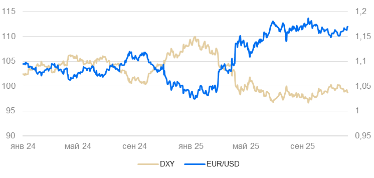 Мы полагаем, что курс евро останется крепким до конца года. В I квартале 2026 г. возможно его постепенное ослабление до $1,14 за евро.