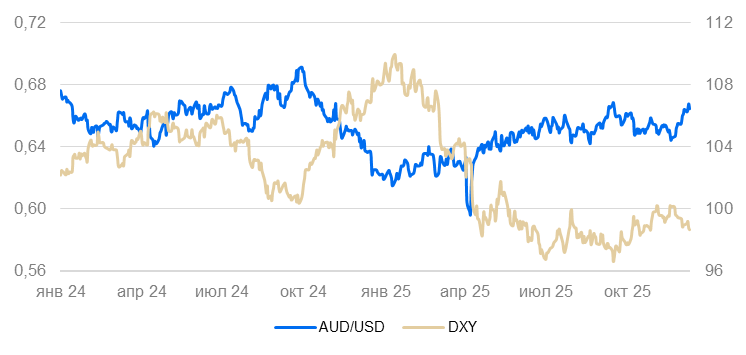 Банк Австралии оставил ставку на уровне 3,6%. Банк заявил, что инфляция в последние месяцы замедлилась, но осталась выше цели и волатильной, риски ее ускорения сохраняются. Уровень безработицы в ноябре остался на 4,3%.