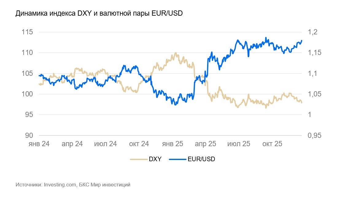 США выпустили данные по инфляции в октябре-ноябре. Бюро трудовой статистики не собирало данные за октябрь из-за приостановки финансирования правительства США, и теперь они уже не будут собраны. Данные за ноябрь были подготовлены частично. Они показали замедление темпов инфляции с 3% год к году (г/г) в сентябре до 2,7% в ноябре, базовой инфляции — с 3% до 2,6% г/г. Текущие показатели необычно низкие и могут быть результатом ошибки измерения из-за частичного сбора данных.