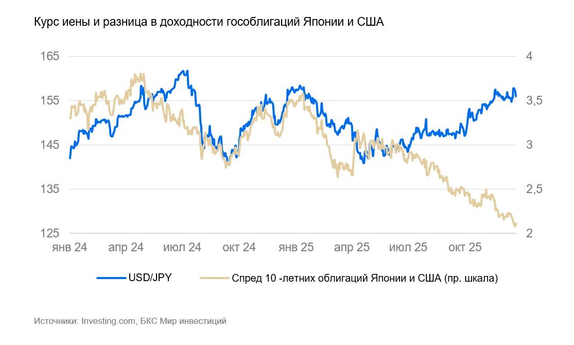 На неделе иена слабела почти до 158, но затем частично отыграла потери до 156 иен за доллар.