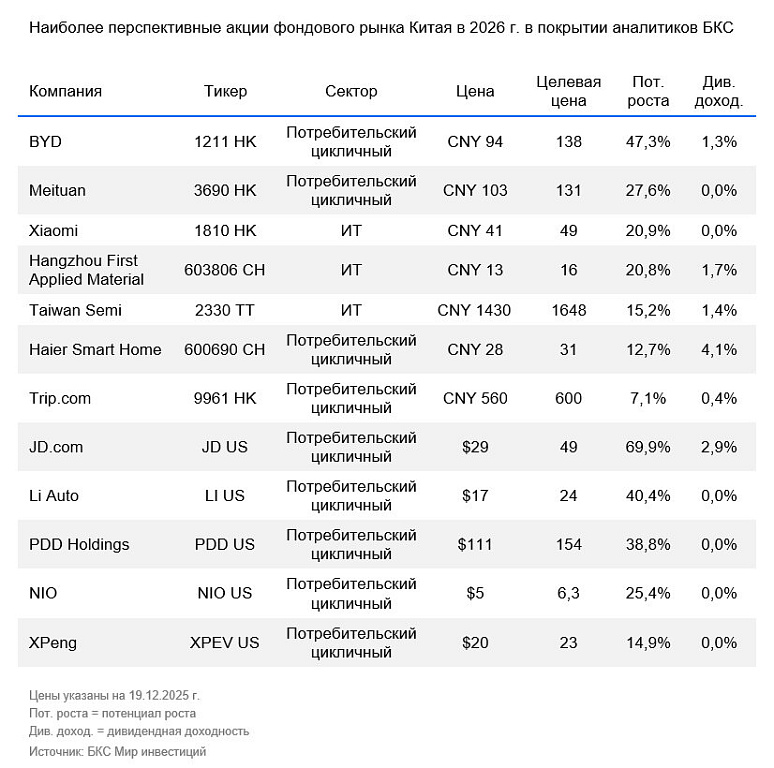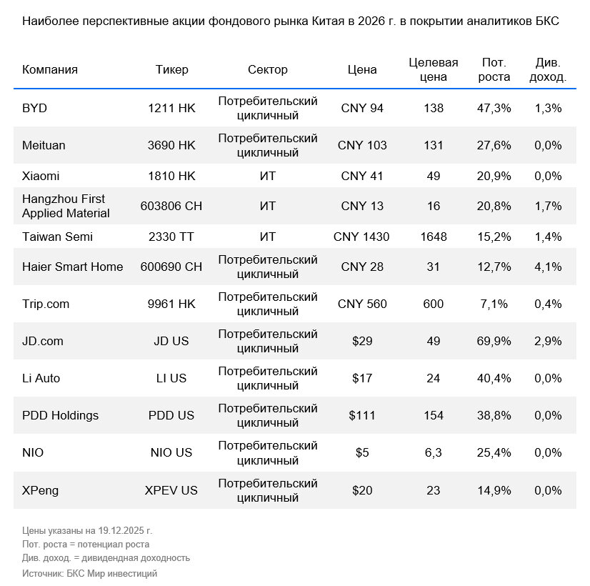 Мы сохраняем «Нейтральный» взгляд на рынок акций США. Наша цель для индекса S&P 500 на 2026 г. составляет 7300 пунктов с потенциалом роста на 5%. В фокусе — компании с устойчивыми бизнес-моделями, сбалансированными оценками и структурной диверсификацией. Китайский рынок акций входит в 2026 г. в фазу стабилизации. У нас «Нейтральный» взгляд на индекс Hang Seng c целевым уровнем 28 000, который предполагает потенциал роста на 10%.