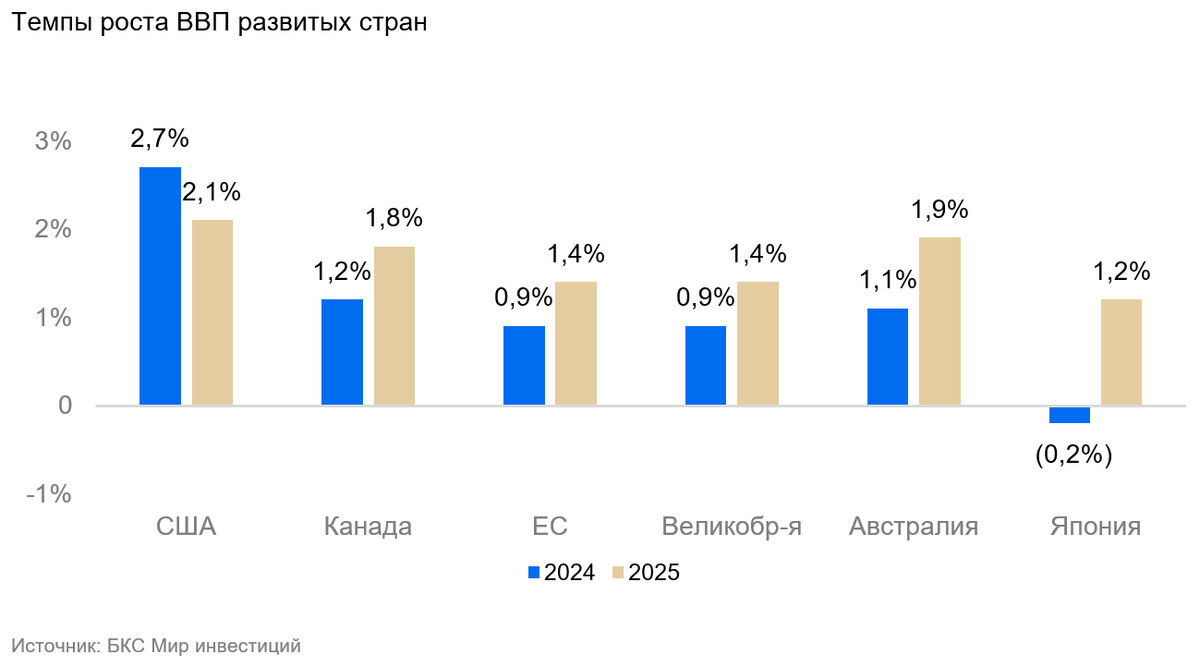 Рост ВВП останется на уровне тренда (1,5–2%). Компании будут адаптироваться к последствиям повышения пошлин, сокращения доступности рабочей силы, замедления реального роста внутреннего спроса.