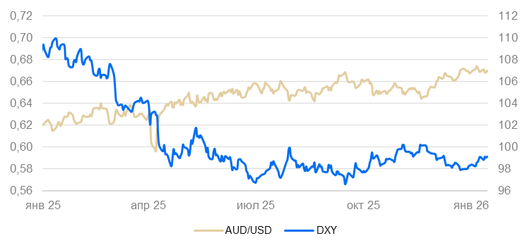 Торговый баланс в ноябре сократился до 3 млрд австралийских долларов — минимума с августа. Экспорт в Китай стагнировал, экспорт в США снизился на 10% из-за повышения пошлин, а также сезонности. Импорт продолжил расти более уверенным темпом, частично в ответ на сезонно высокий потребительский спрос.