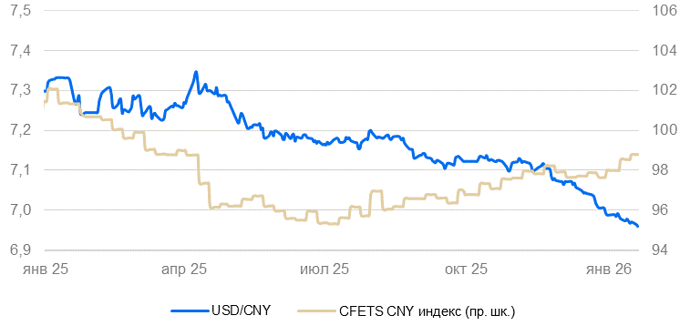 Китай отчитался о росте ВВП в 2025 г. на 5%. На этом фоне юань продолжил укрепляться.
