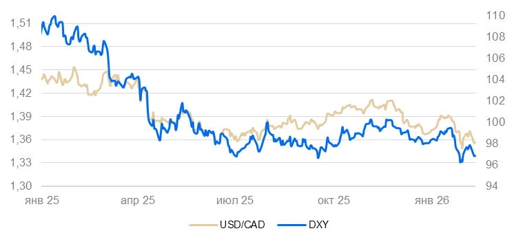 Канадский доллар в последние месяцы переоценивается пропорционально изменению курса доллара США. В перспективе полугода и более допускаем его дополнительное ослабление относительно доллара из-за уязвимости Канады к торговым шокам.