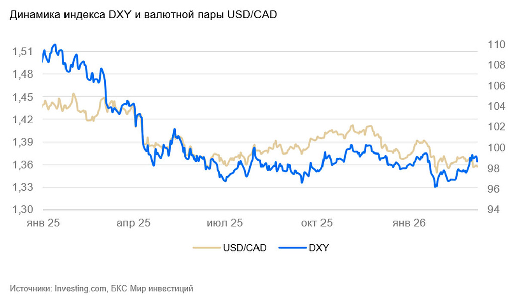 Канадский доллар в последние месяцы переоценивается пропорционально изменению курса доллара США. В перспективе полугода и более мы допускаем его дополнительное ослабление относительно доллара из-за уязвимости Канады к торговым шокам.