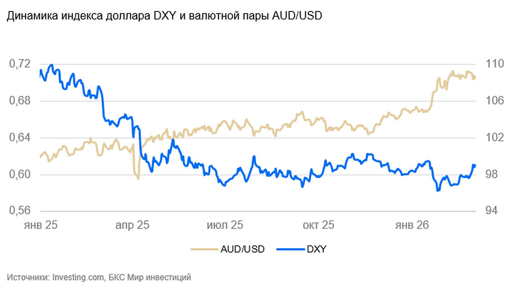 Курс осси за неделю укрепился на 1,9% до $0,71. Рынок продолжает отыгрывать ужесточение политики Банка Австралии.