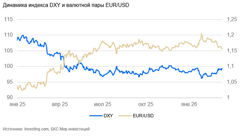 Индекс доллара США за неделю не изменился. Валютные рынки были волатильны, но по итогам вернулись к уровням прошлой недели. Значимых статистических данных по большинству стран не выходило. Наибольшая активность сохраняется на сырьевых рынках. Нефть Brent за неделю дорожала с $84 до $120/барр. в результате паники, вызванной перебоями поставок через Ормузский пролив. Однако затем она падала обратно до $84 и вновь выросла до $95–100 /барр. США и Иран продолжают обмениваться громкими заявлениями. Иран начал минирование пролива и потопил или повредил несколько танкеров. Западные новостные агентства сообщают, что иранские и китайские танкеры продолжают проходить через пролив без инцидентов. В целом, новости и заявления быстро меняются, порой на противоположные.