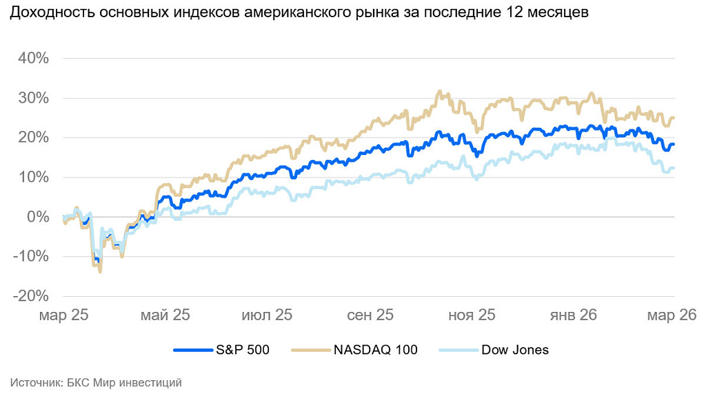 Среди отдельных историй выделялись падение бумаг поставщика инфраструктуры для ИИ Nebius Group (-10,4%) на новостях о размещении конвертируемых облигаций.