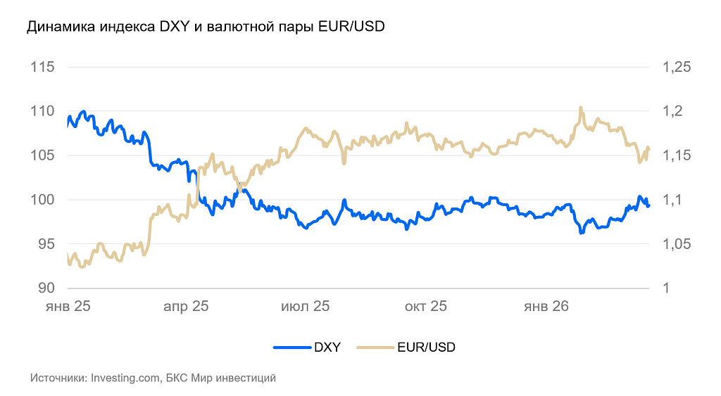 На неделе курс евро слабел до $1,14 на фоне бегства инвесторов от нефтяного риска, но затем окреп на 1,3% до $1,156. Курс евро бьется с уровнем полугодовой поддержки. Однако оснований для снижения нефтяных рисков пока нет.