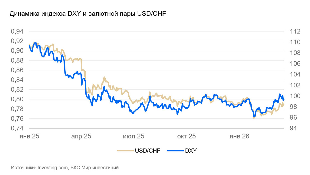 Банк Швейцарии оставил ставку на уровне 0%. Регулятор все еще ожидает низкую инфляцию (в среднем 0,5% за 2026 г.), но, в отличие от предыдущих заседаний, явно декларировал готовность вмешаться на валютной рынок, чтобы предотвратить переукрепление франка.