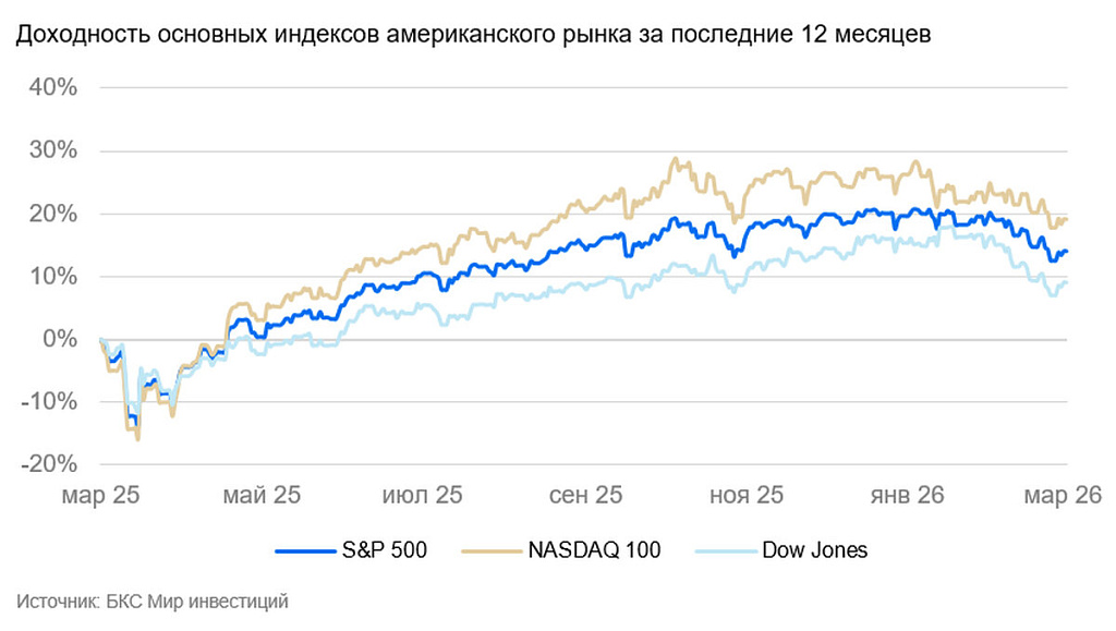 На этом фоне инвесторы активнее возвращались в рисковые активы, а нефтегазовый сектор оказался под давлением вслед за снижением котировок «черного золота». Дополнительное влияние оказала макростатистика: дефицит счета текущих операций США в IV квартале сократился сильнее ожиданий — до $190,7 млрд, однако рост цен на импорт на 1,3% стал максимальным за несколько лет и напомнил о сохраняющихся инфляционных рисках.