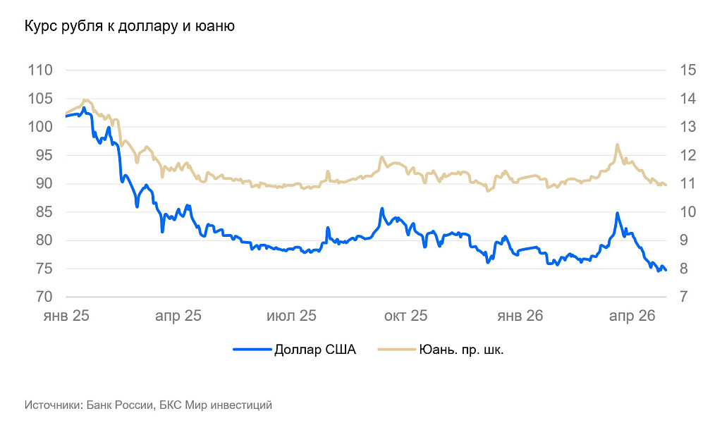 Полагаем, что в ближайшие недели курс будет оставаться в диапазоне 75-80 руб. за доллар США.