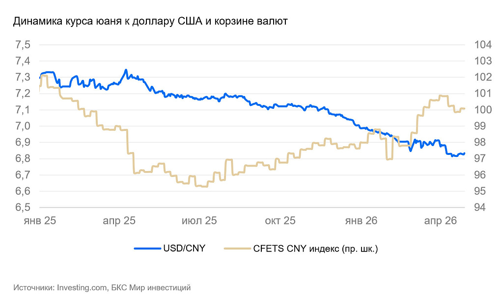 Мы полагаем, что в среднесрочной перспективе курс юаня продолжит расти. В случае укрепления доллара вероятен переход к боковику и возврат волатильности.