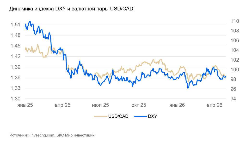 «Луни» в последние месяцы меняется в цене пропорционально движению доллара США. На горизонте полугода и далее мы допускаем, что он ослабнет к доллару еще сильнее из-за уязвимости Канады к внешнеэкономическим шокам, хотя Канада и выигрывает от повышения сырьевых цен.