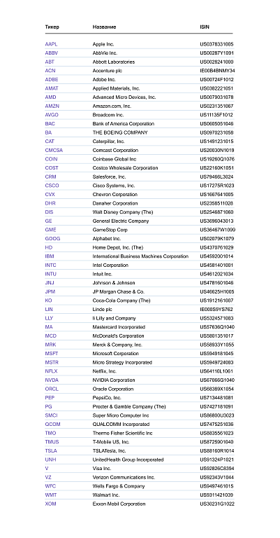 Полный список акций